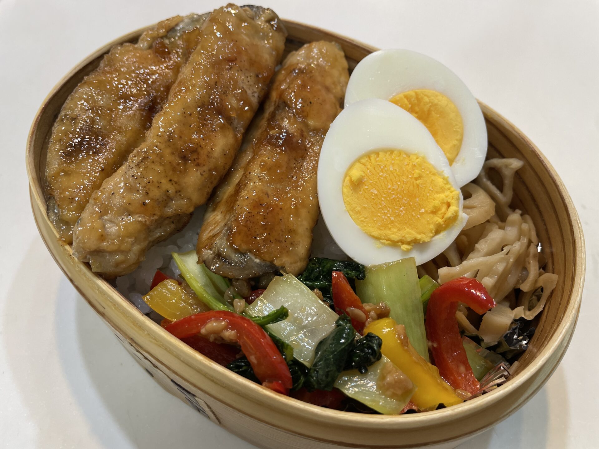 赤と黄色のパプリカのおかげで、茶色いお弁当に彩りが加わってよかったです。