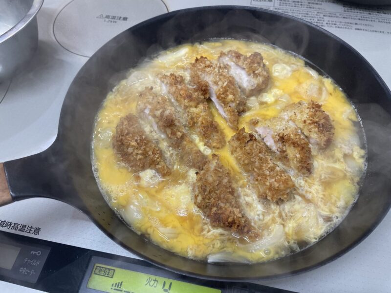 チキンカツの卵とじの出来上がり。