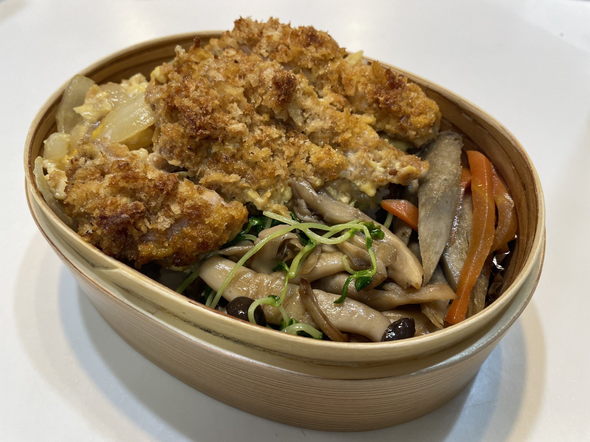 ボリューム満点だけど、重くない、チキンカツ丼弁当の出来上がり。