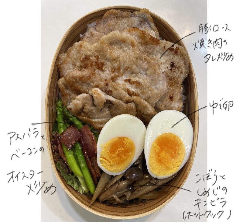 本日も豚ロースの薄切り肉を使ったお弁当。