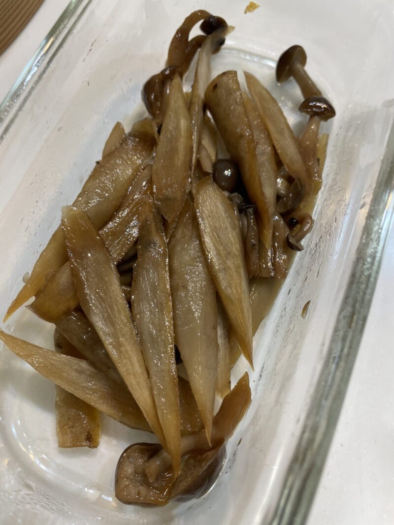 こちら、我が家で大活躍してくれているホットクックを使って作ったごぼうとしめじのキンピラ。
