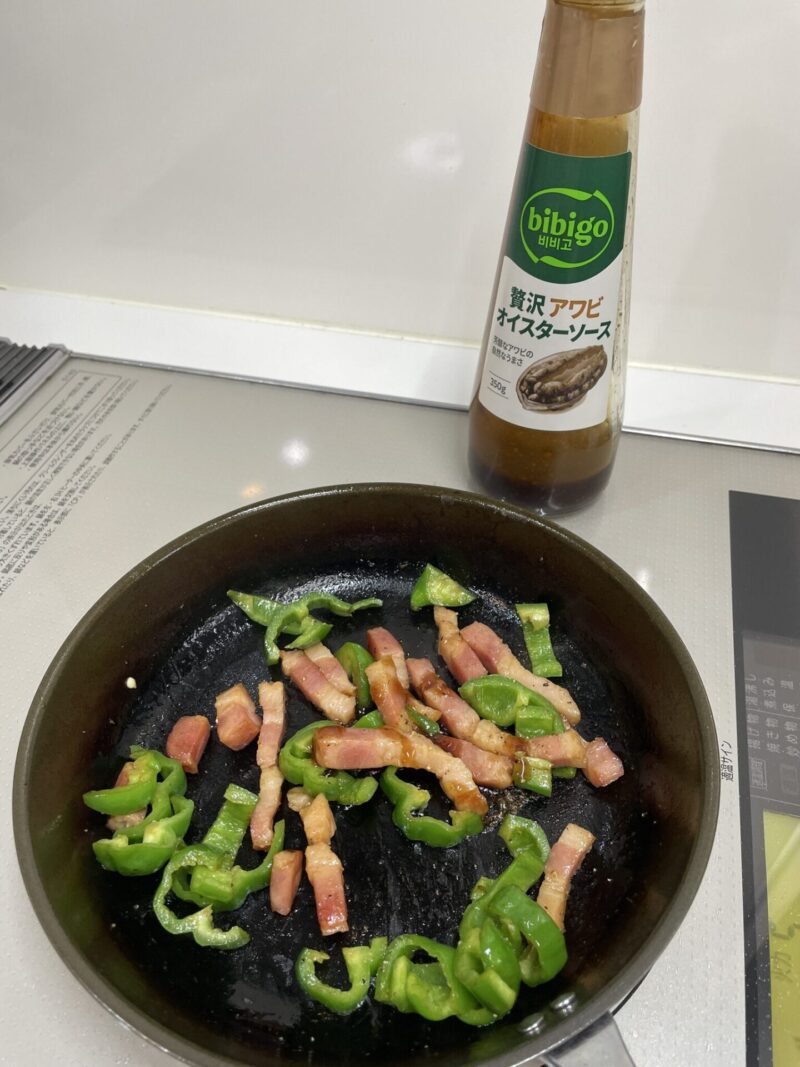 そんなときによく作るのが、ベーコンとピーマンのオイスター炒め