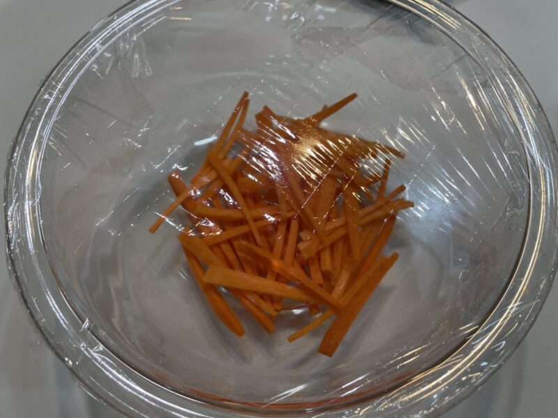 ① 人参を細切りにする。