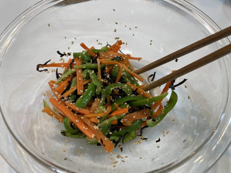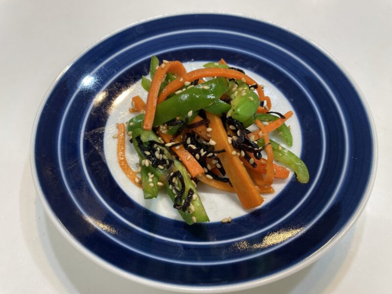 人参とピーマンを使った「塩昆布和え」を作ってみました。