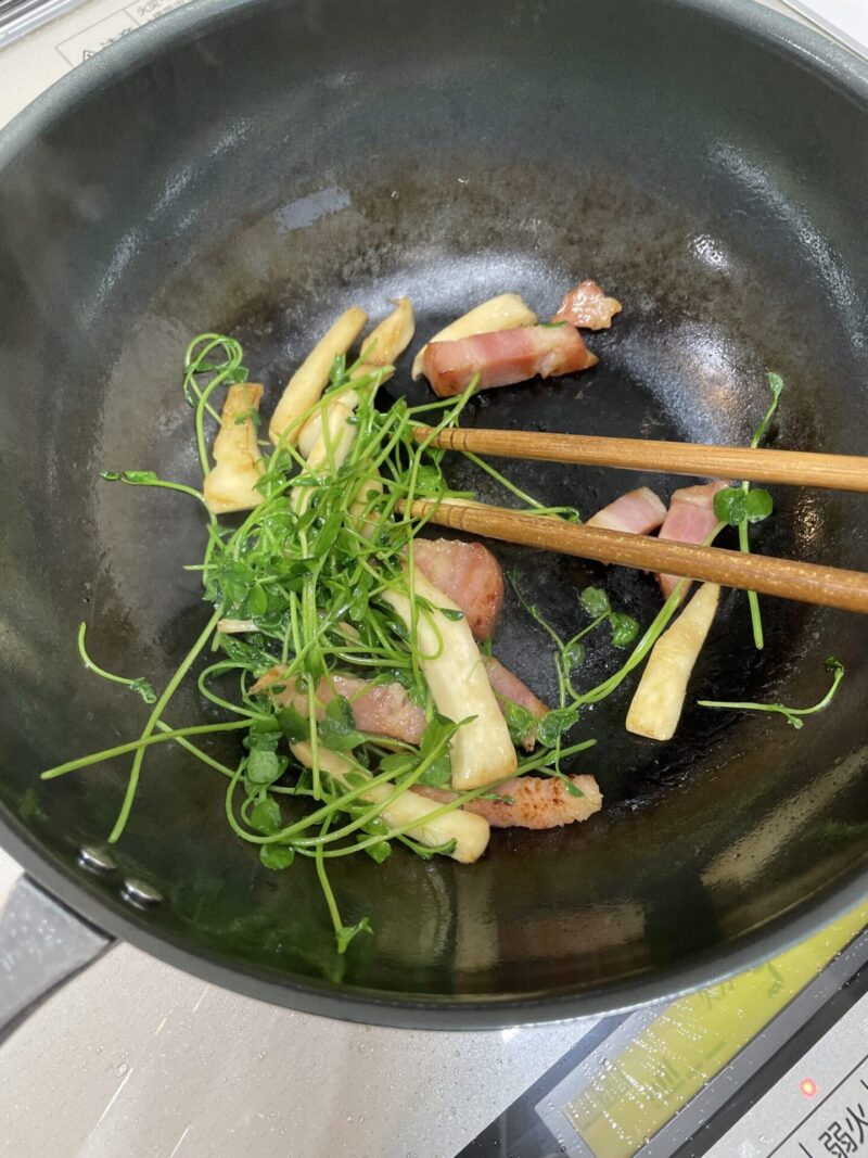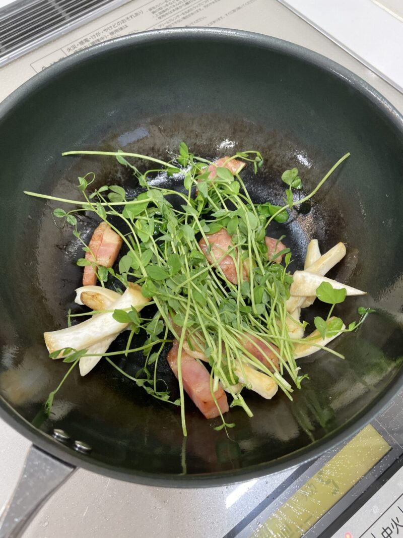 豆苗×エリンギ×ベーコンの組み合わせは、