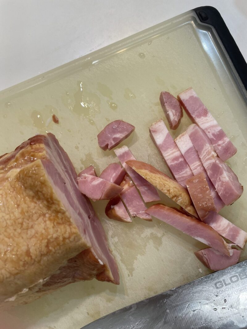まず、塊になっているベーコンを全部棒状にカットします。