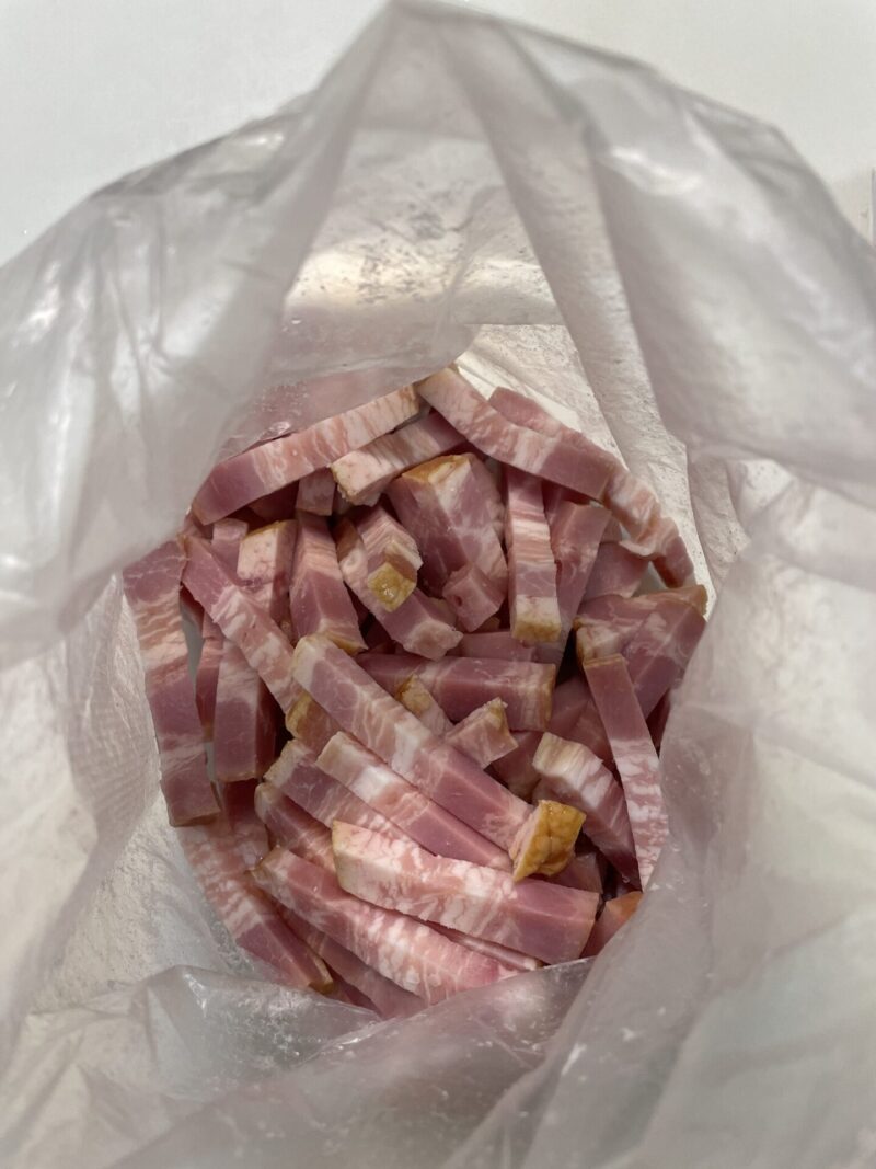 カットしたベーコンを、ビニール袋(アイラップなど)にバラして入れます。
