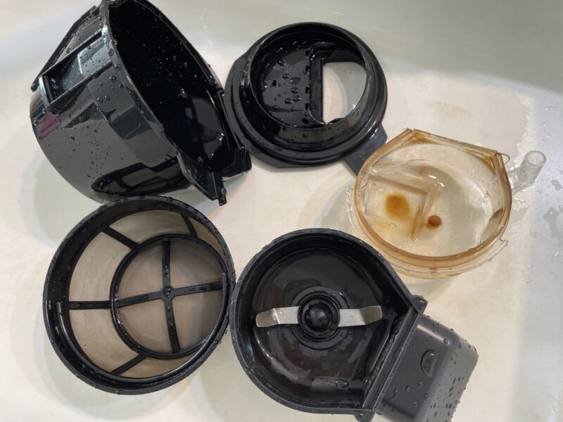 フィルターとグラインダー部分は、スポンジで洗う前に、