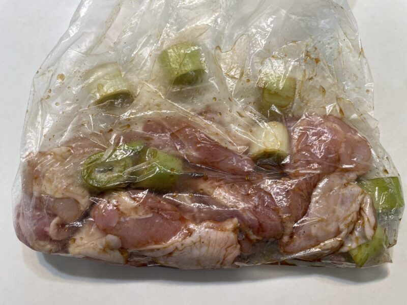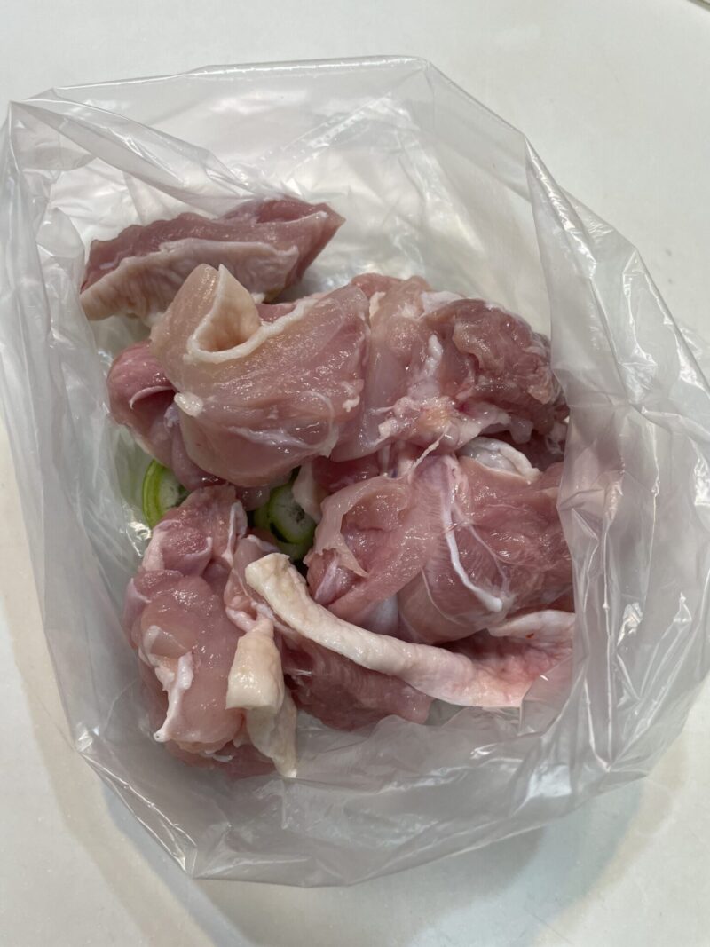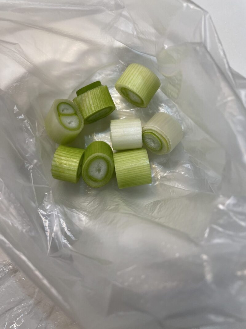 ① アイラップ(ビニール袋)に、2cm幅に切ったネギを入れる