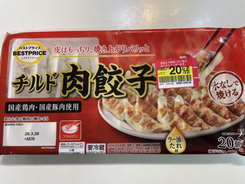 いざという時のお助けおかずとして、チルドの餃子が安くなっている時に購入して、そのまま冷凍庫で冷凍保存しています。