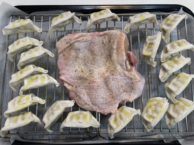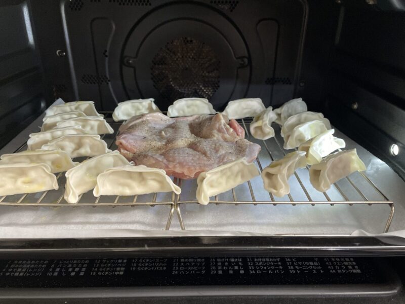 ヘルシオの同時調理で作るグリルチキンと揚げ餃子の簡単レシピ