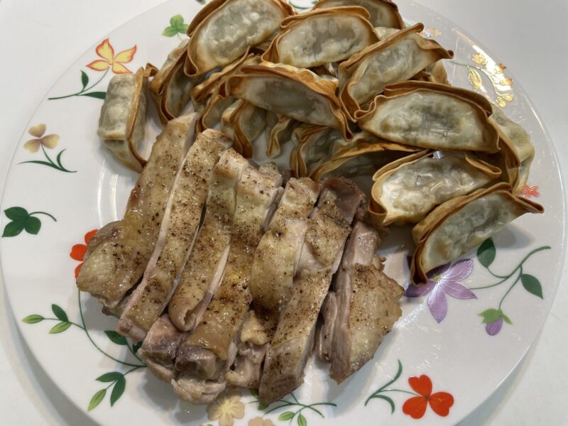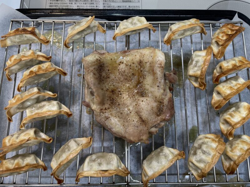 グリルチキンと揚げ餃子を同時に調理してみました。