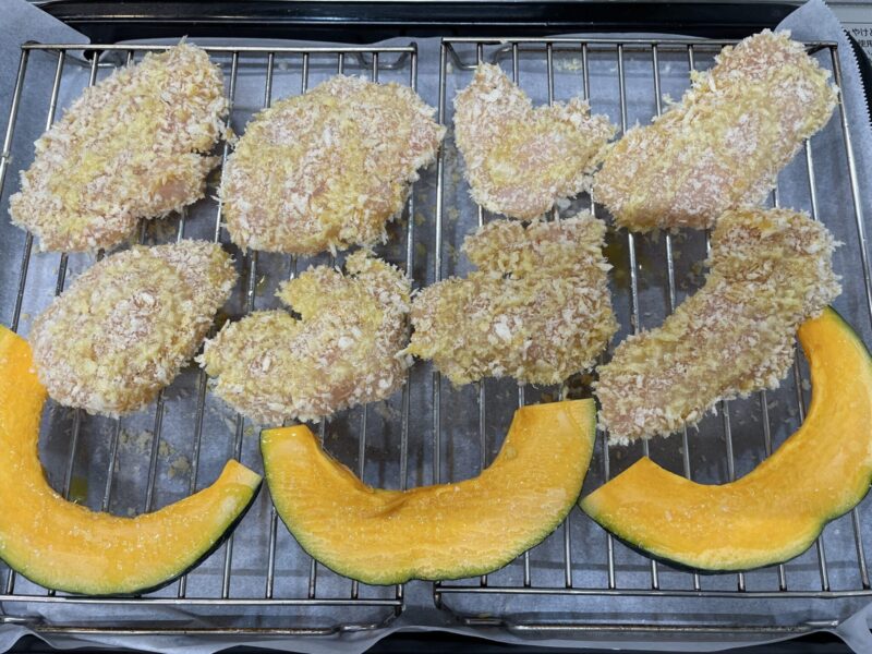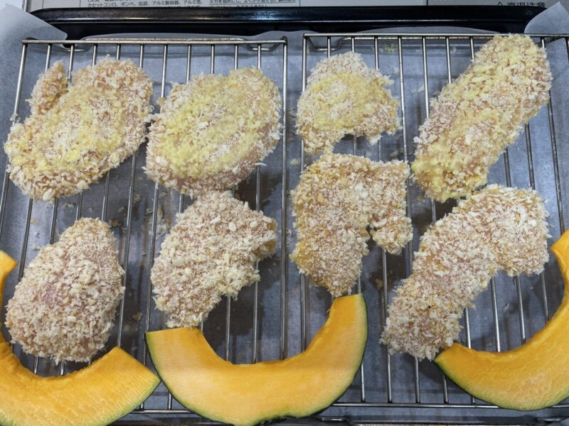 ヘルシオの「まかせて調理 網焼き・揚げる」機能で作るチキンカツです。