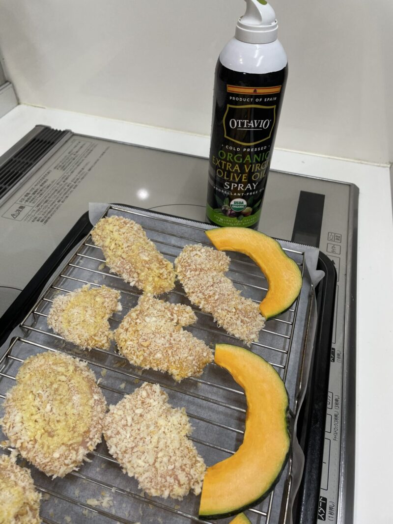 油で揚げないのでとてもヘルシーですが、パン粉はサクッとしていて満足感があります。