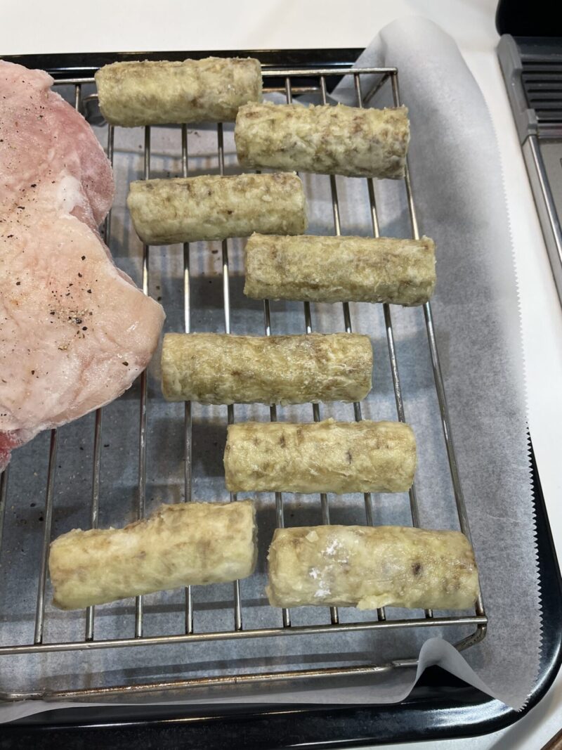 今回は網焼き・揚げる機能で3品同時調理を実験してみました。