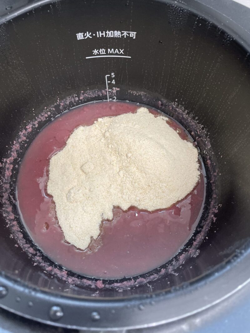 ⑤ 残り30分のタイミングで「材料を加えてください」とお知らせが鳴る