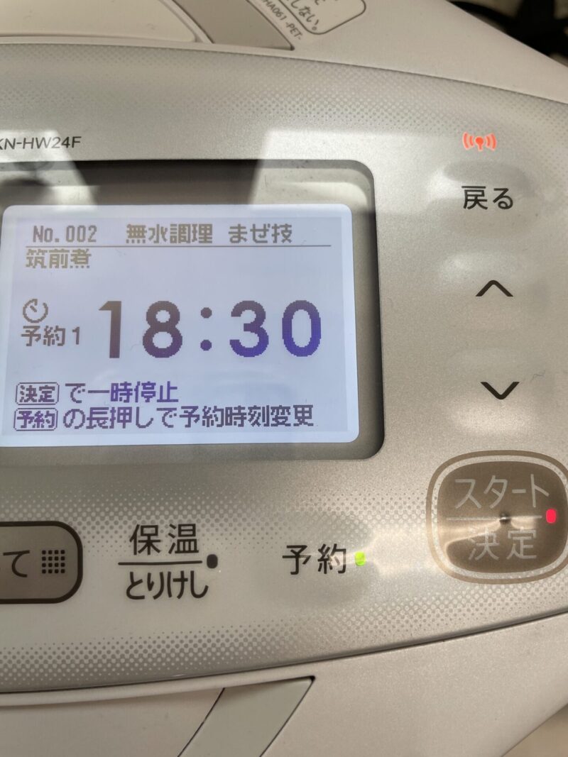 この日は娘の習い事があったので、帰宅時間に合わせて予約調理にしました。