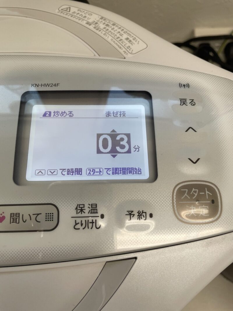 ホットクックの「炒める」メニューを使うと、チャーハンもほったらかしで作ることができます。