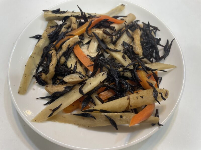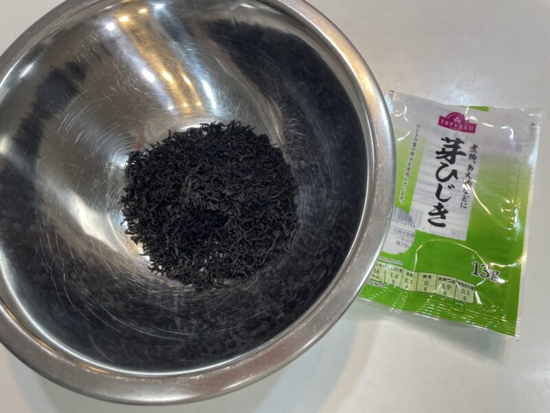 - 乾燥ひじきは熱湯で5分戻しが時短
