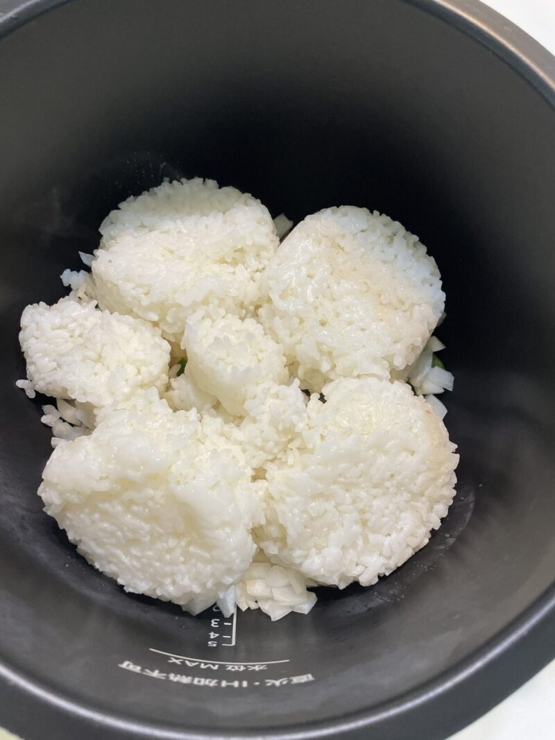 ・ホットクックで作るベーコンとネギと卵のチャーハンレシピ