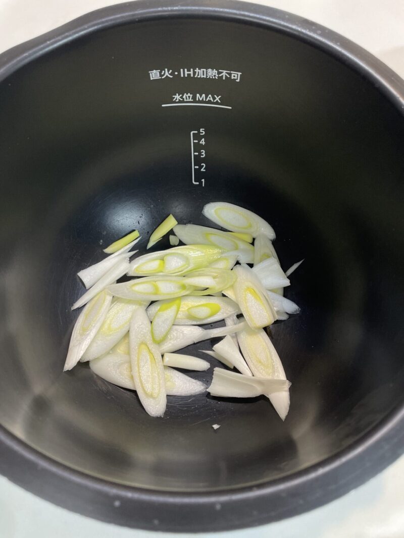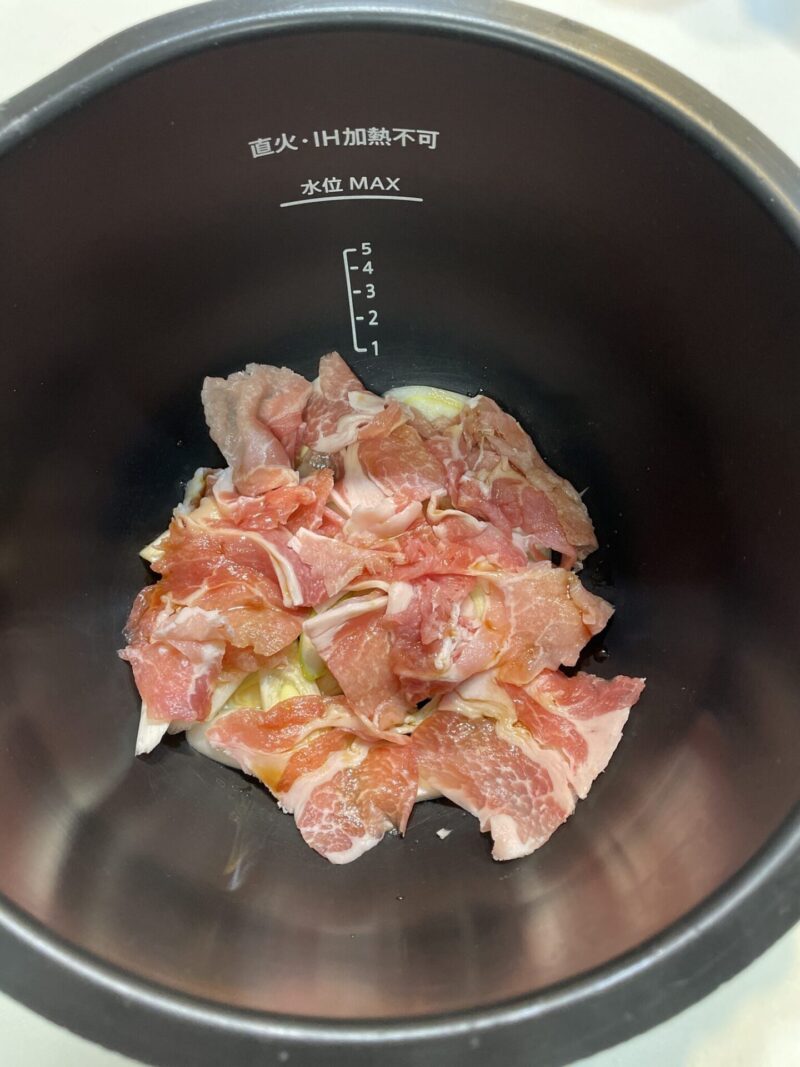 そのままホットクックの内鍋に入れ、ネギの上に広げて並べます。