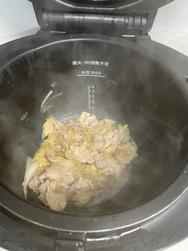 ホットクックで作る豚ロース薄切り肉のすき焼き炒めの簡単レシピ