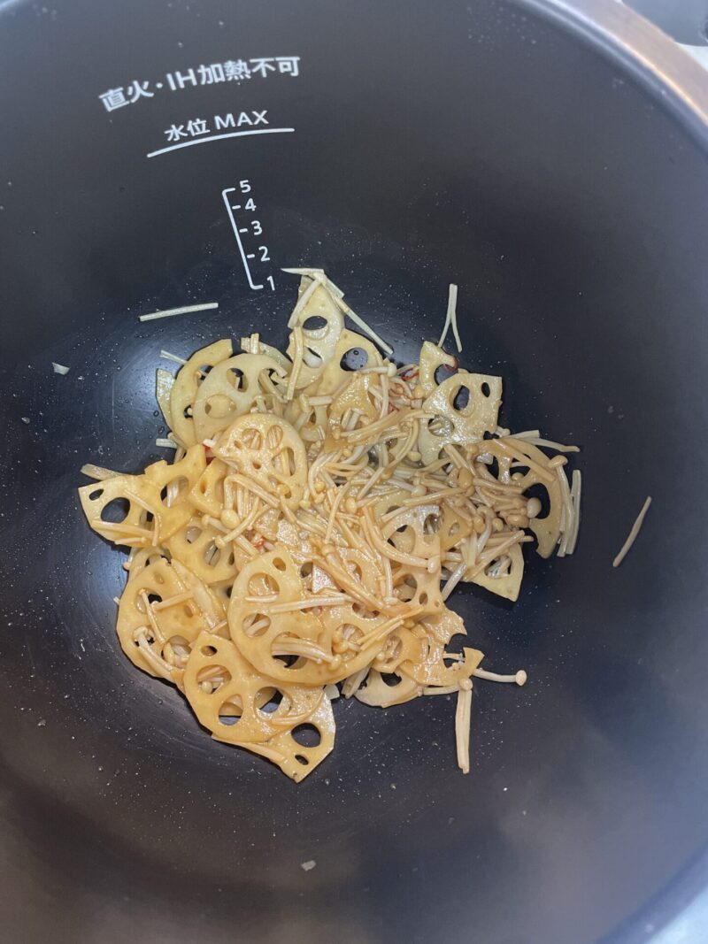 シャキシャキのレンコンとえのきにしっかり味が染みて、とても美味しく仕上がります。