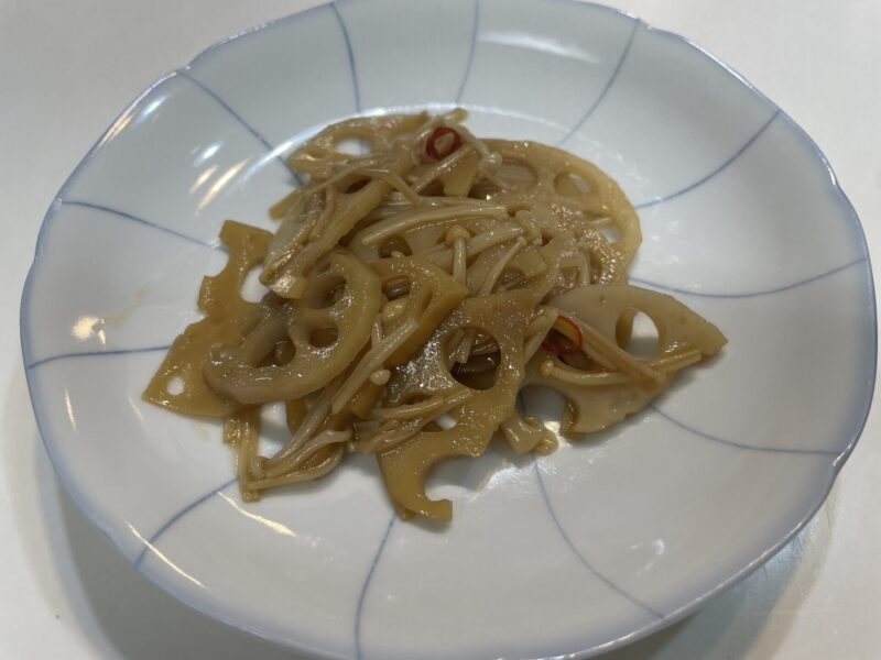 今日は、ホットクックで作った「レンコンとえのきの副菜」をご紹介します。