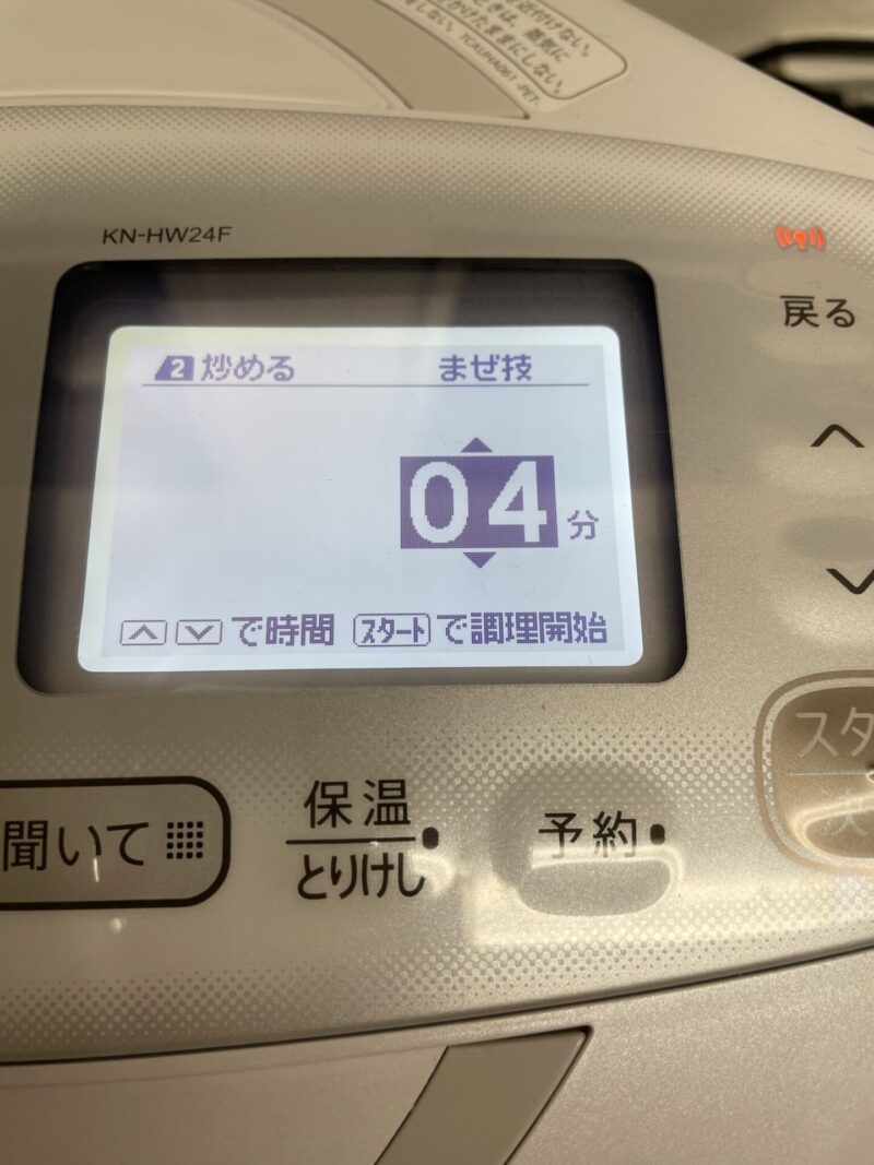 ③手動で調理 → 炒める → 4分 → スタート