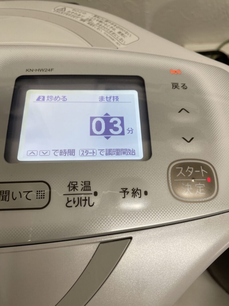 手動 → 炒める → 3分