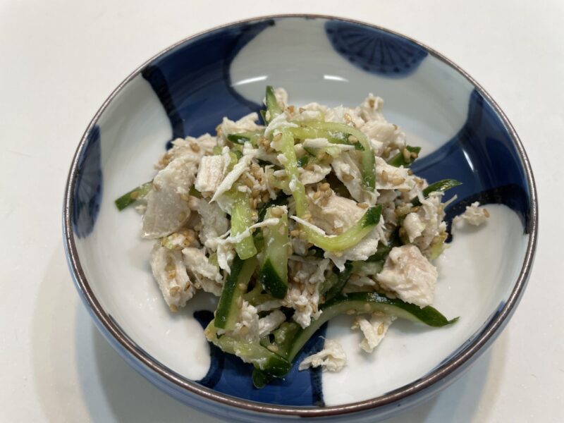 今回ご紹介するのは、サラダチキンときゅうりの和え物。