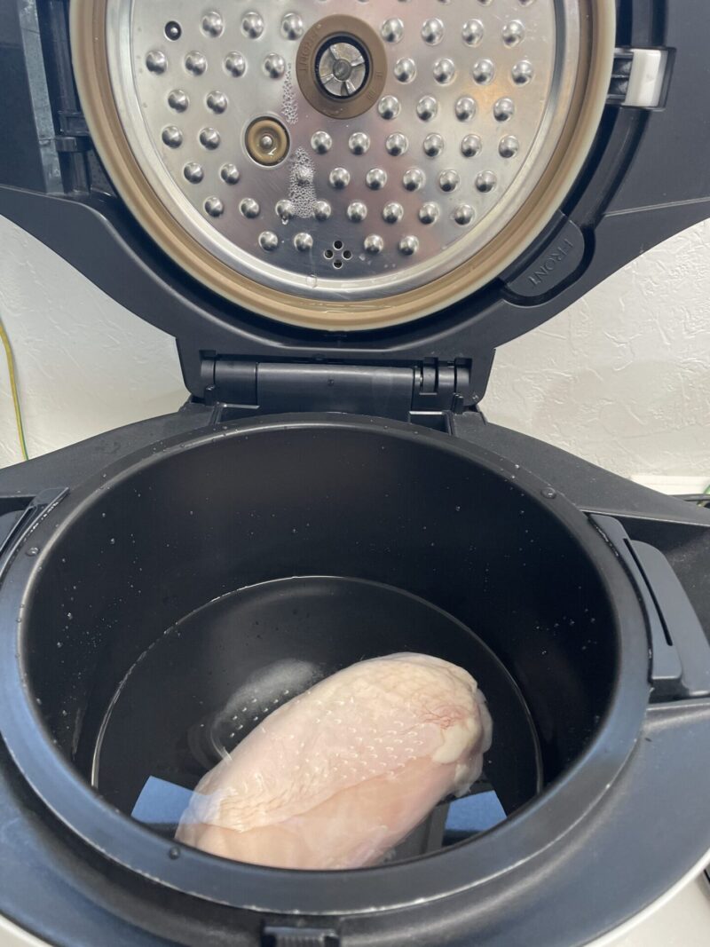 ① ホットクックの内鍋に冷凍の鶏胸肉をそのまま入れる
