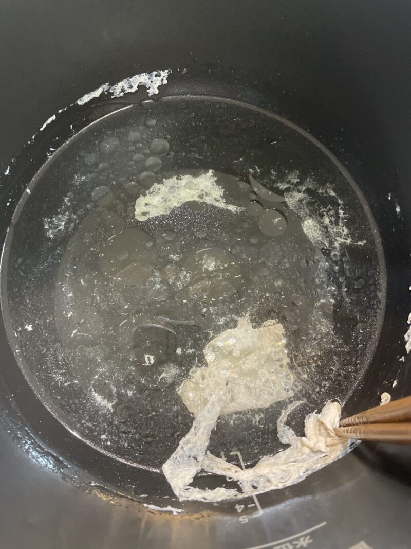 ① 茹で汁の灰汁を取り除く