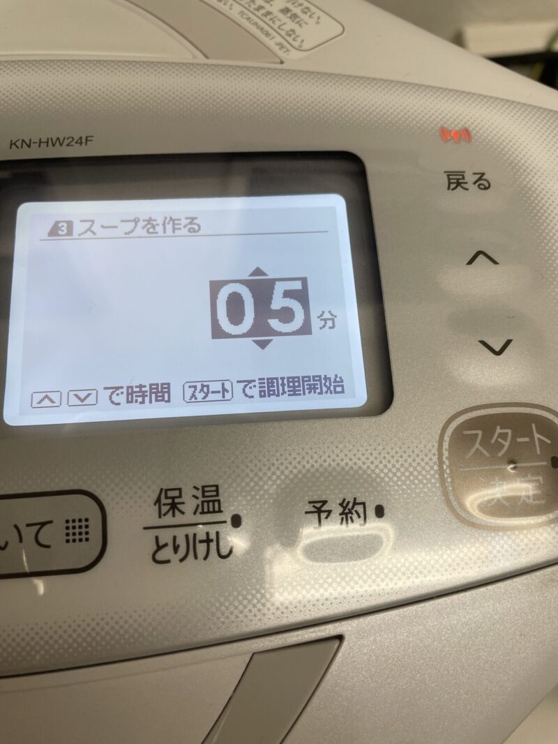 - 手動で調理→スープを作る→まぜない→5分