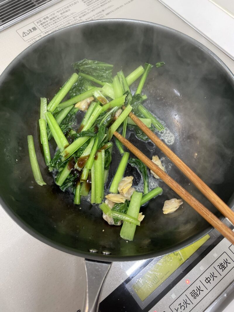 そんな時に便利なのが、小松菜とむきあさりのオイスター炒め。