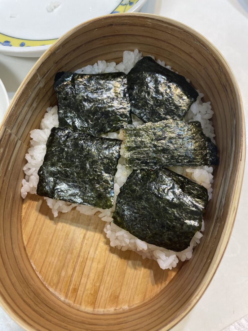 冷めたら、お弁当箱にごはんを詰めて、2段ののり弁に。
