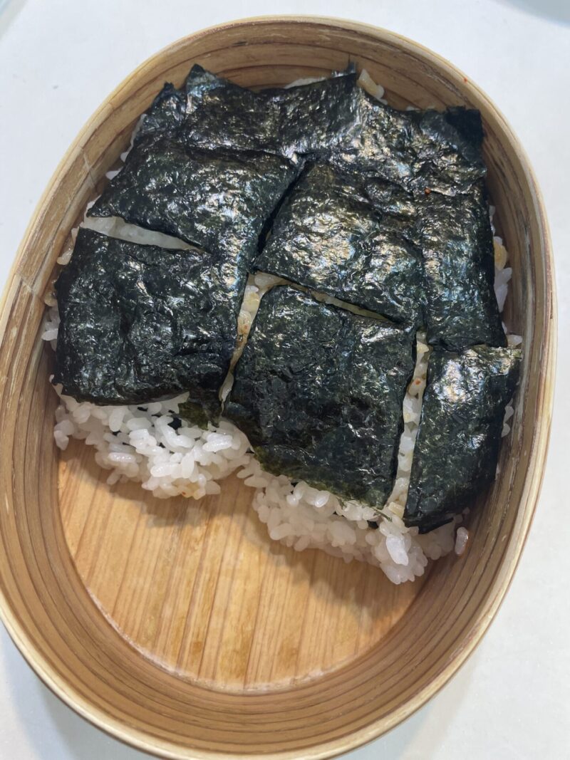 今日のお弁当のポイントは、海苔に一味醤油をつけることだけ。