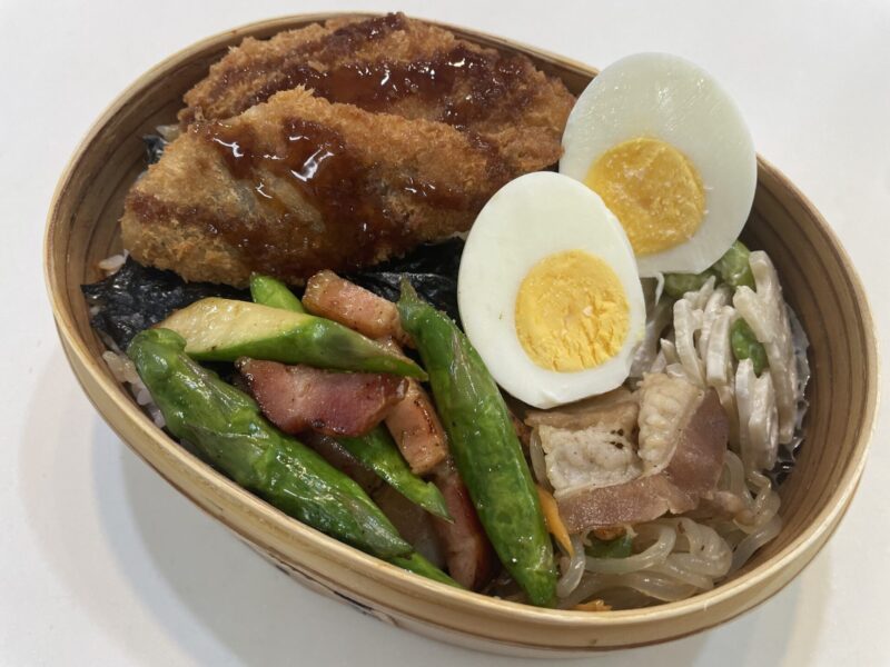 チャプチェや冷凍のアジフライを活用しながら、 今日も5時起き弁当、なんとか乗り越えました!