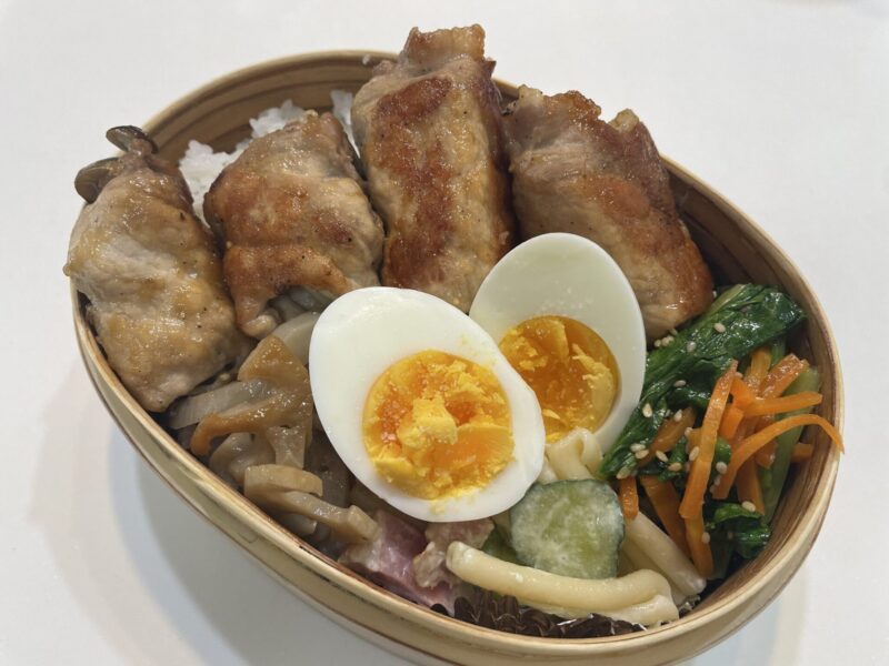 今回は、実際にわが家のお弁当に入れている「しめじの豚肉巻き」と副菜を紹介します。