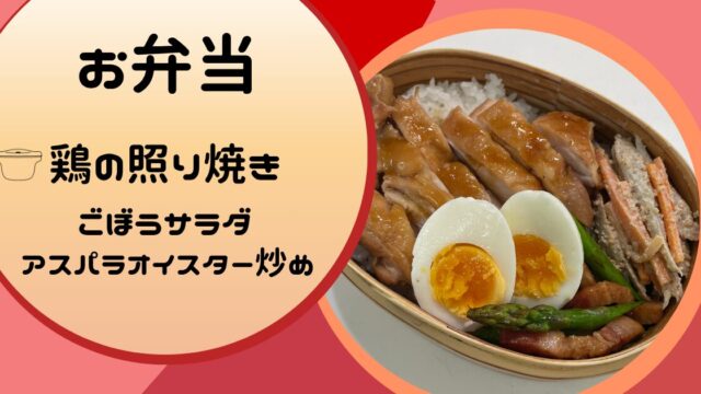【お弁当】ホットクックで鶏の照り焼き|副菜はごぼうサラダ&アスパラ炒めで時短