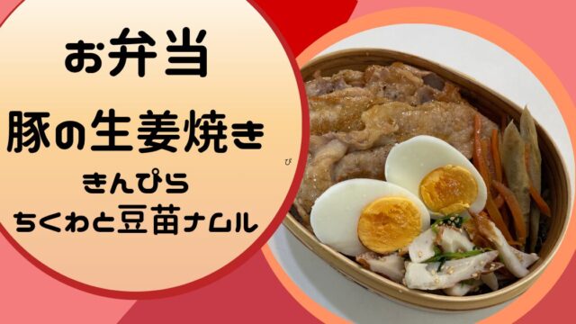 【お弁当】豚の生姜焼き弁当|副菜はきんぴら&ちくわと豆苗のナムル